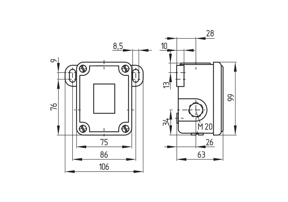 ● :2 个电缆入口 M 20 x 1.5